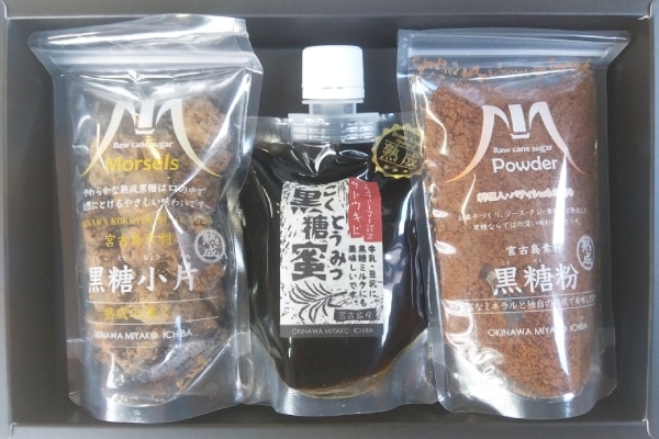 【セット内容】 熟成黒糖小片×100g 熟成黒糖蜜×200g 熟成黒糖粉×100g 高級感のあるギフト箱でお届けします。 贈り物に最適です♪ 熟成黒糖ならではの黒糖の優しいコクをお楽しみください。